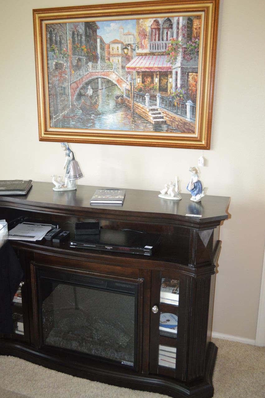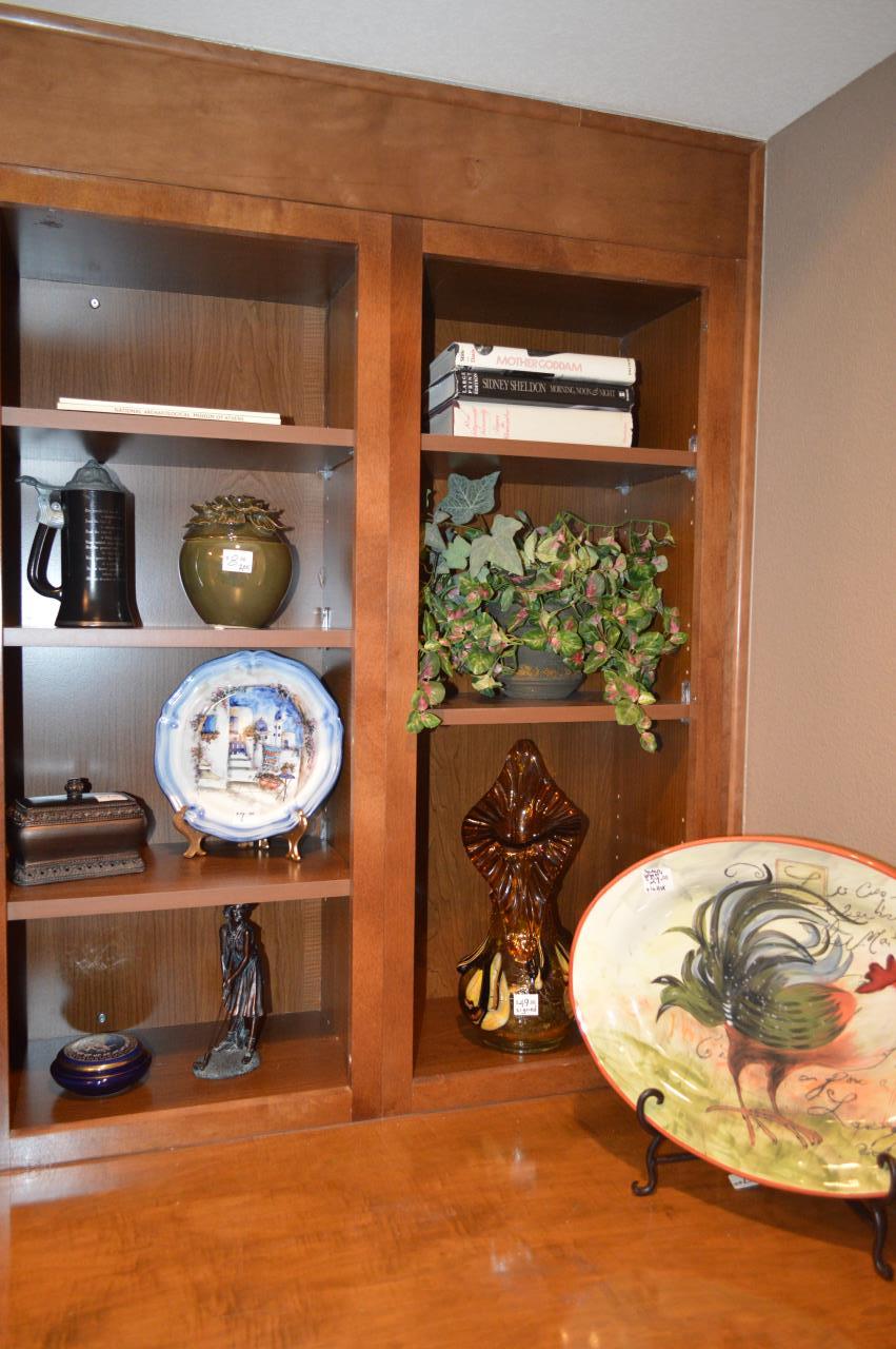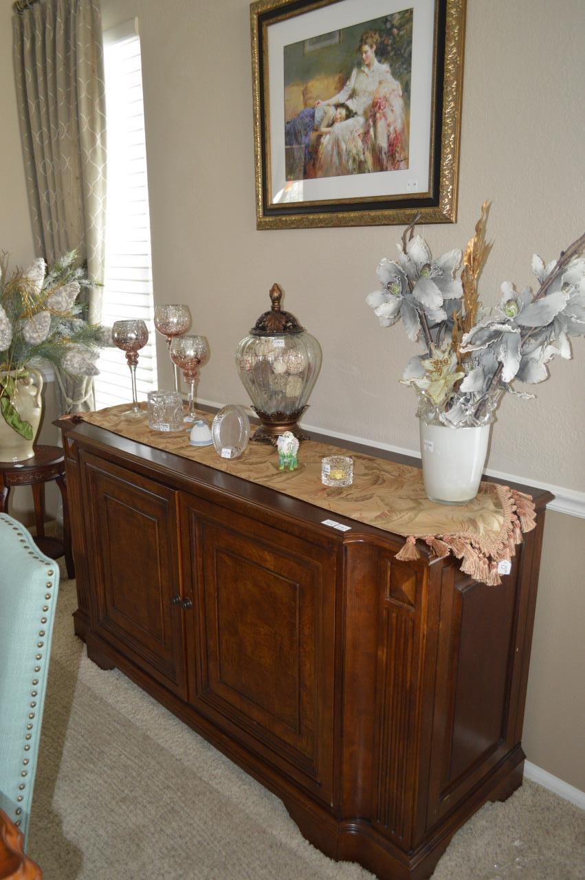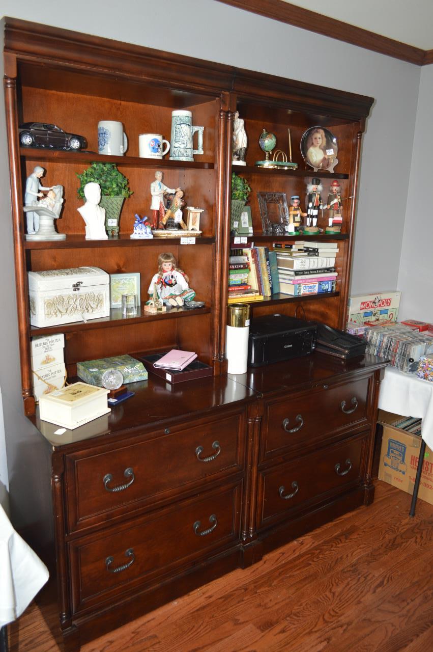 - FURNITURE – Lovely Couches, Arm Chairs, Dining Room Table and Chairs, End Tables, Sofa tables, Sideboards, Buffets, Electric Fireplace Entertainment Center, Walnut Bookshelves, Curio Cabinets, Desk, Queen and King Size Beds, Bar Stools, Teacart, Pramberger Baby Grand Piano, Jewelry Armoire, Rugs and SO MUCH MORE.