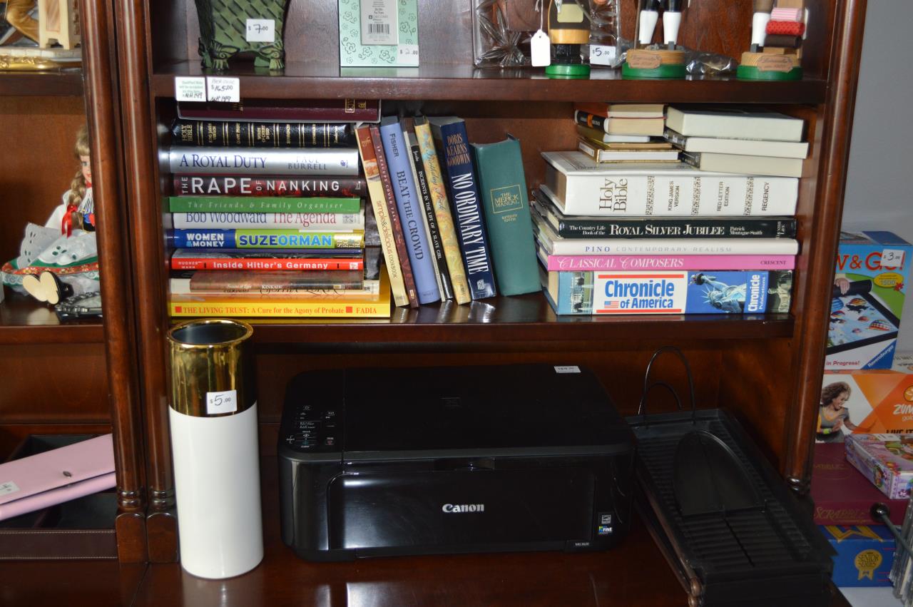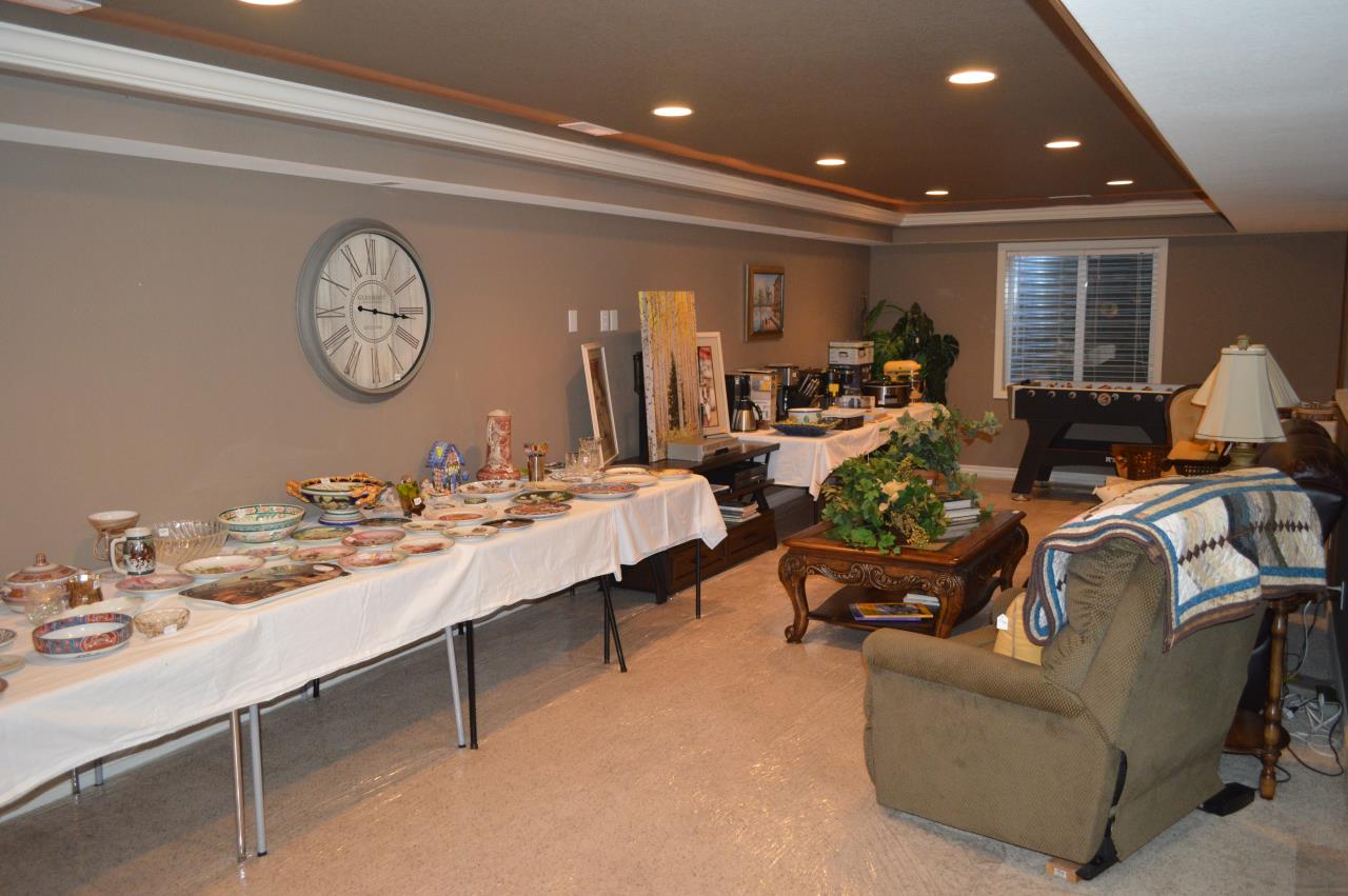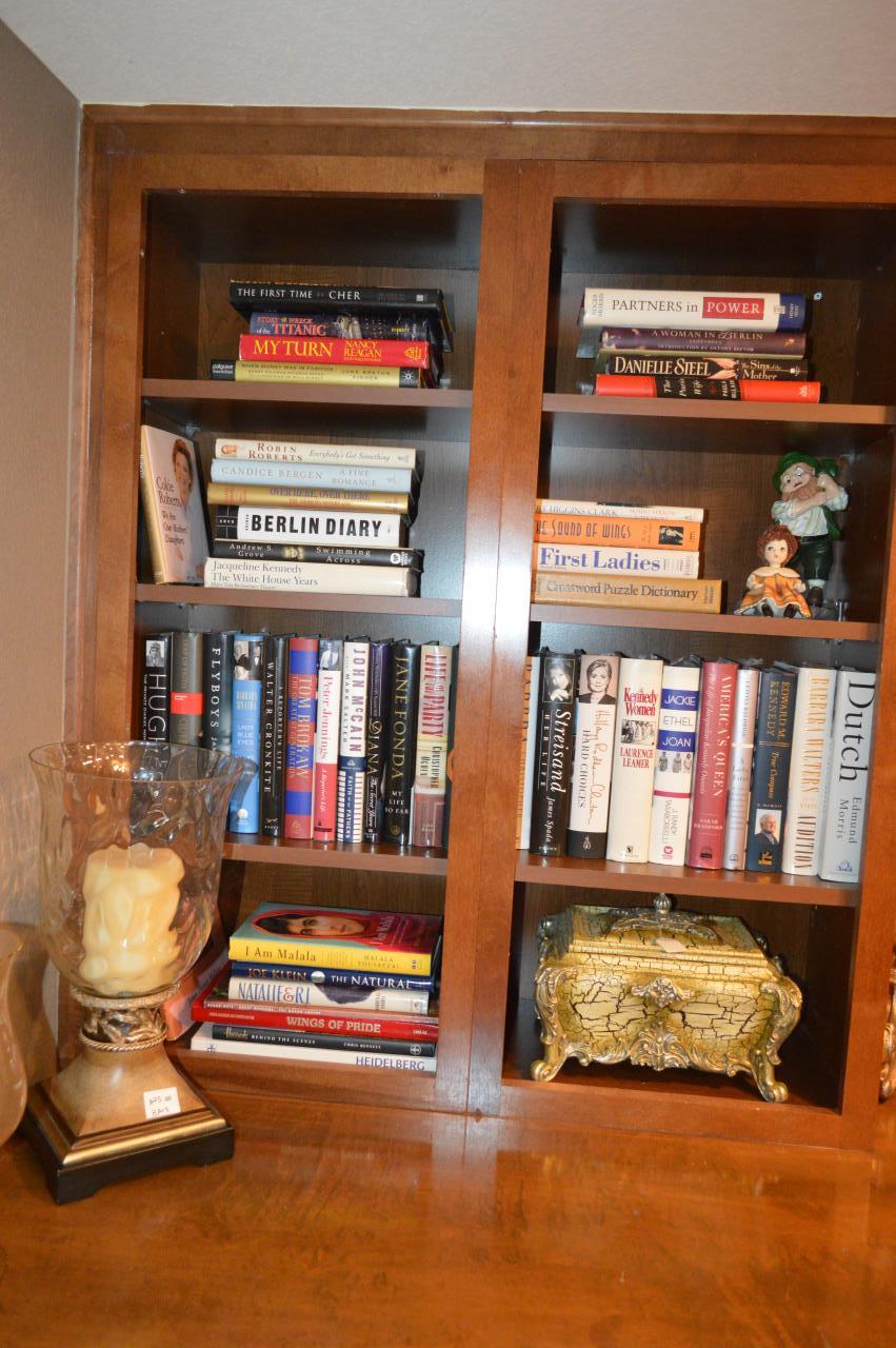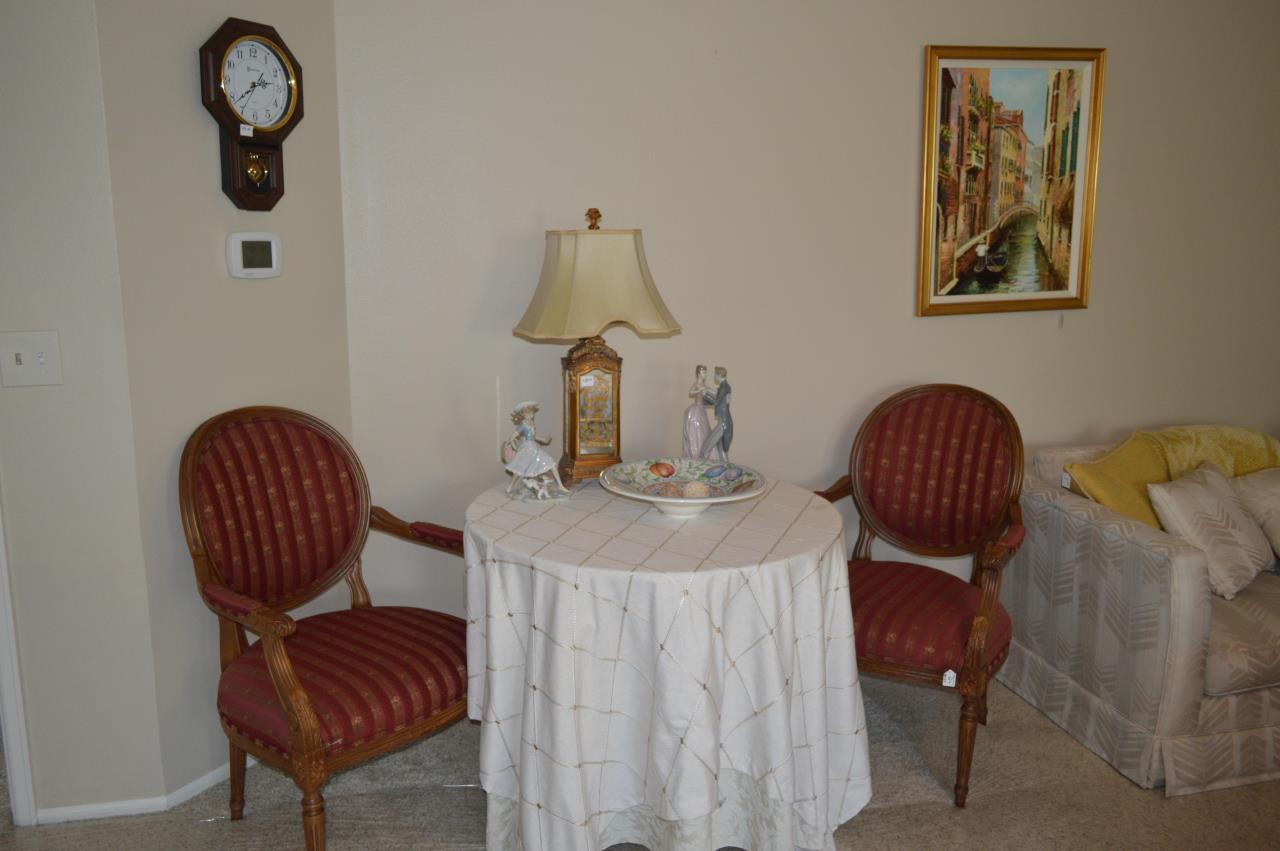 - FURNITURE – Lovely Couches, Arm Chairs, Dining Room Table and Chairs, End Tables, Sofa tables, Sideboards, Buffets, Electric Fireplace Entertainment Center, Walnut Bookshelves, Curio Cabinets, Desk, Queen and King Size Beds, Bar Stools, Teacart, Pramberger Baby Grand Piano, Jewelry Armoire, Rugs and SO MUCH MORE.