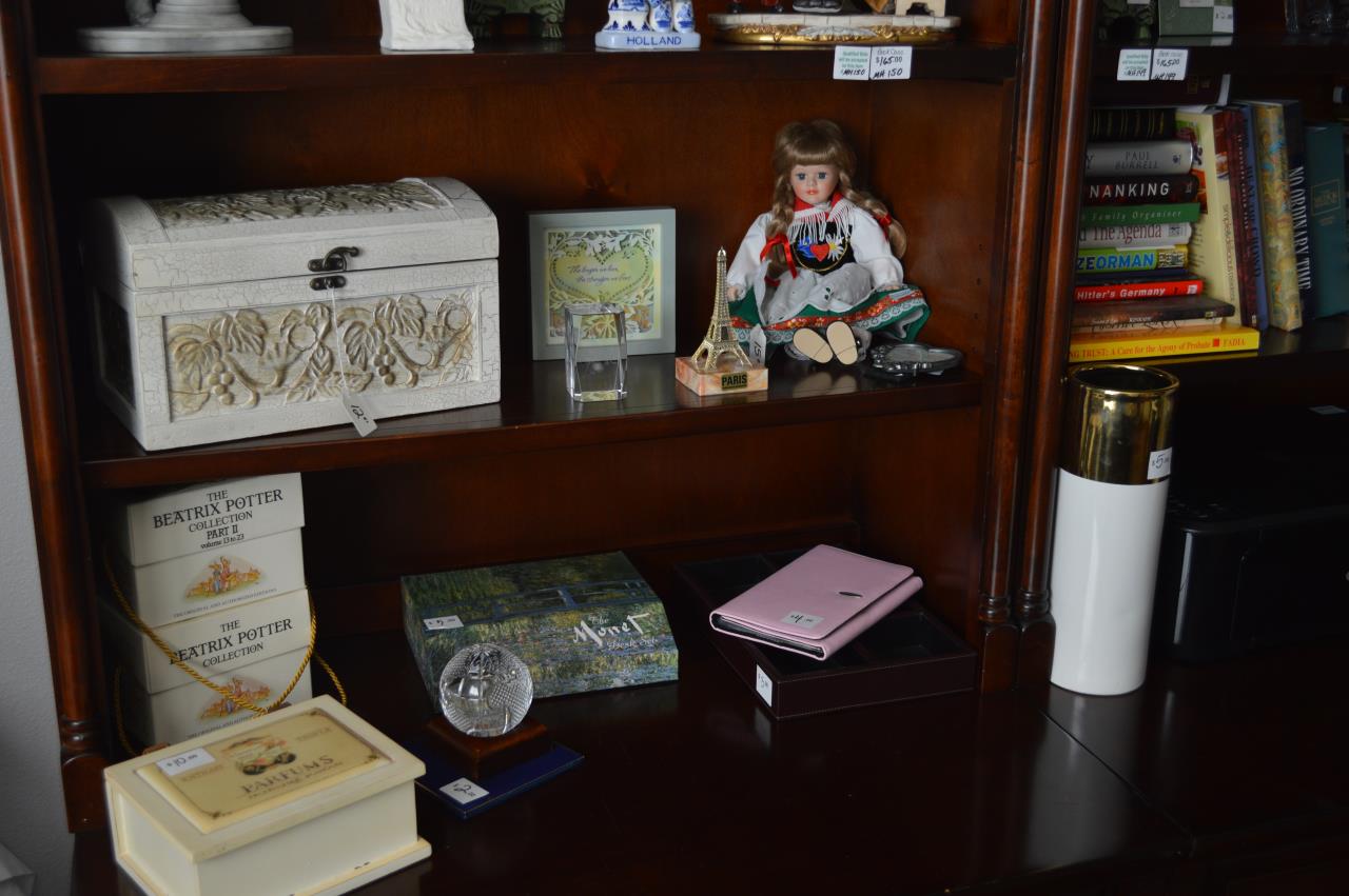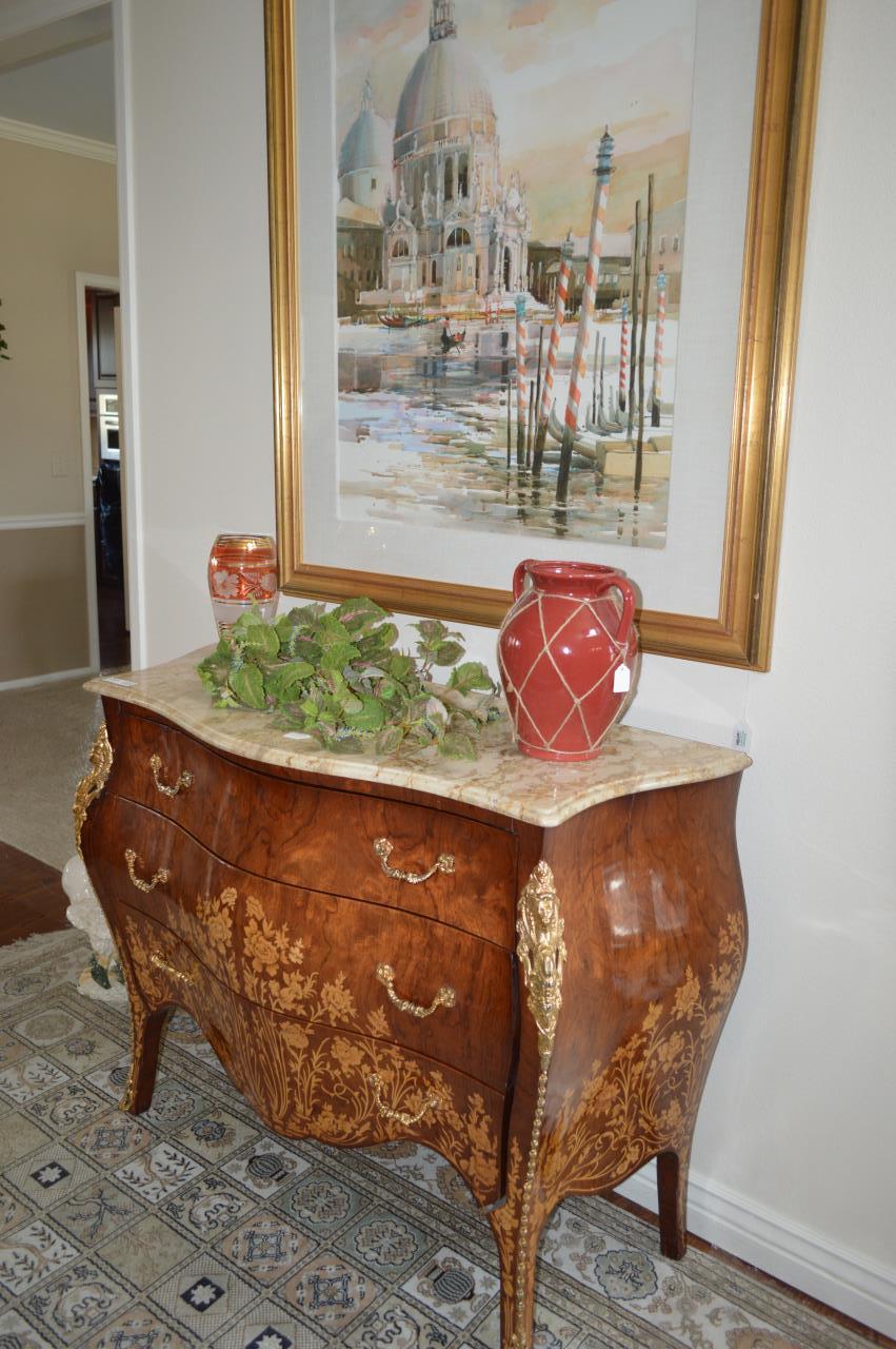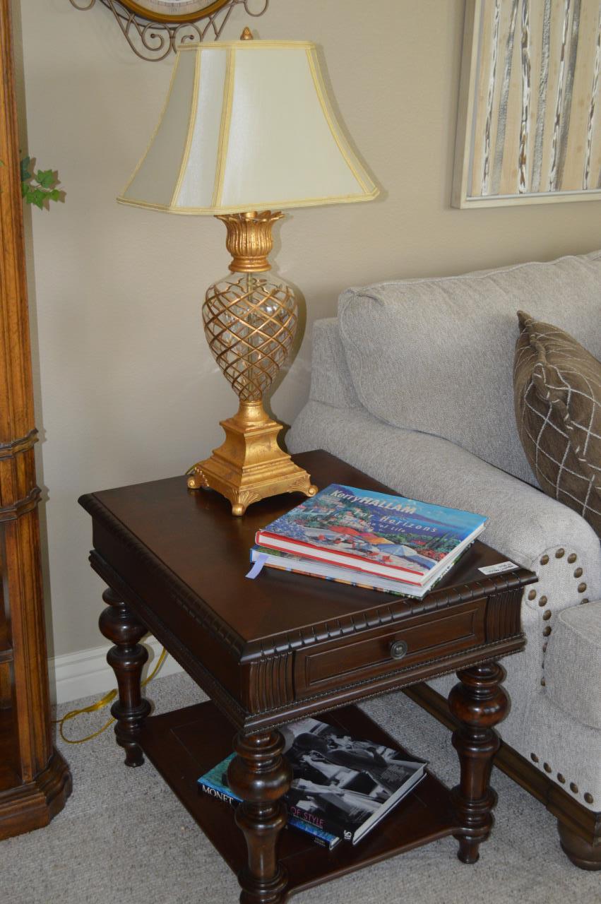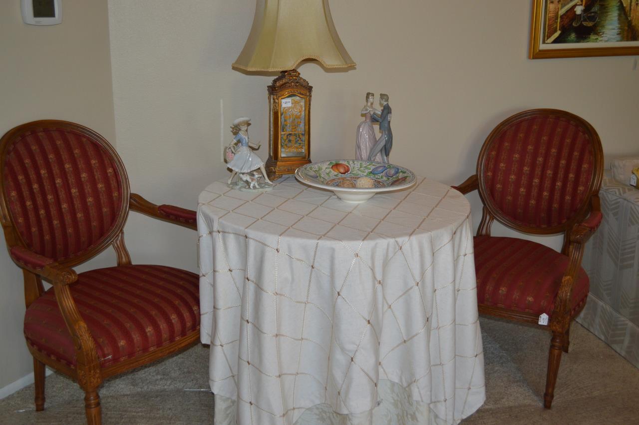 - FURNITURE – Lovely Couches, Arm Chairs, Dining Room Table and Chairs, End Tables, Sofa tables, Sideboards, Buffets, Electric Fireplace Entertainment Center, Walnut Bookshelves, Curio Cabinets, Desk, Queen and King Size Beds, Bar Stools, Teacart, Pramberger Baby Grand Piano, Jewelry Armoire, Rugs and SO MUCH MORE.