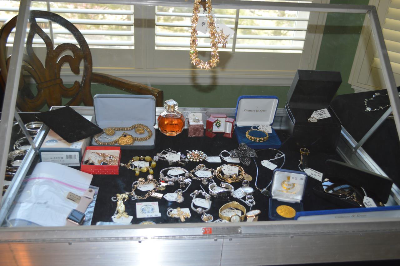 - JEWELRY – Costume Jewelry, Necklaces, Bracelets and Pins, Oakley and Versace Sunglasses, Movado Watches, Apple and Fitbit Watch.