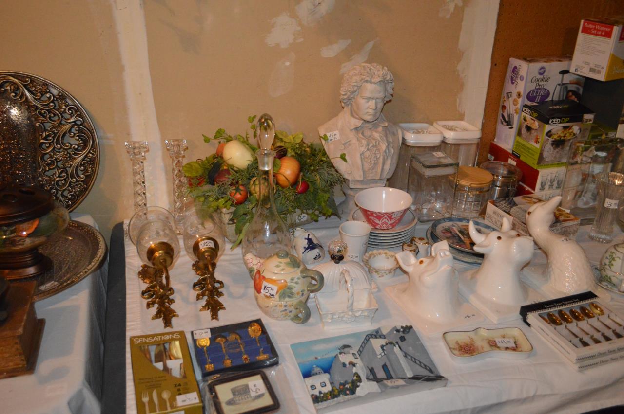 - MISCELLANEOUS – Gorgeous Lamps, Decorator Candle Holders, Clocks, Designer Perfumes, Pillows, Capodimonte Figures, Lladro Figurines, Linens, Portable Ping Pong Table, Bose CD Radio, Pentex, Canon, Nikon Cameras, Wallace Stainless Steel Flatware, Nintendo Wii, Foos Ball Table, Next Grill, Great Outdoor Patio Furniture, Yard Art and Pots, Holiday Decorations.