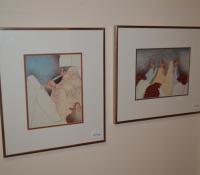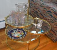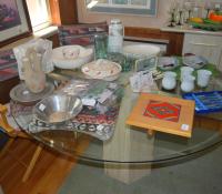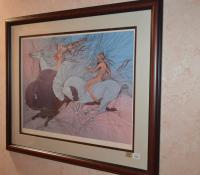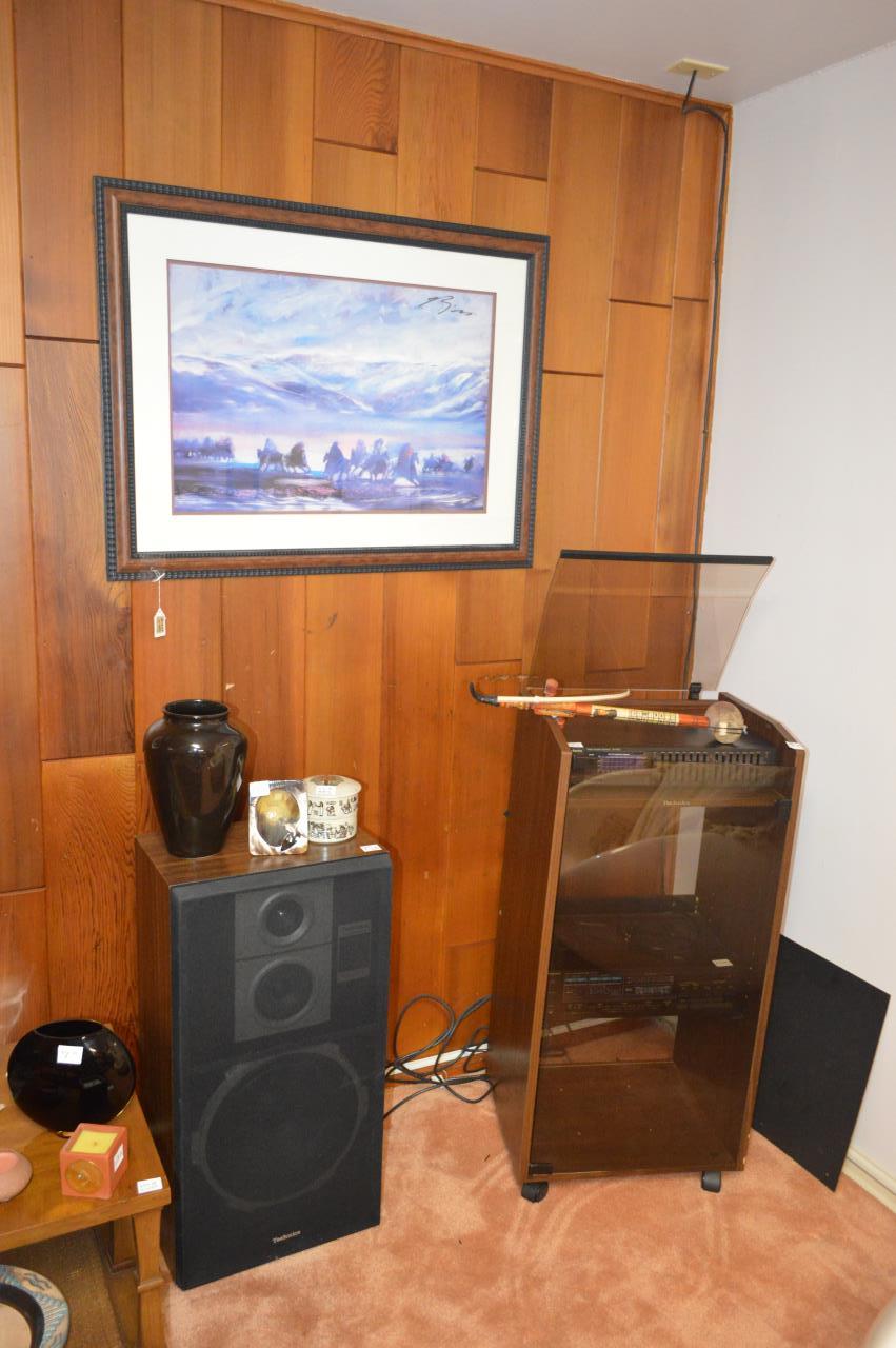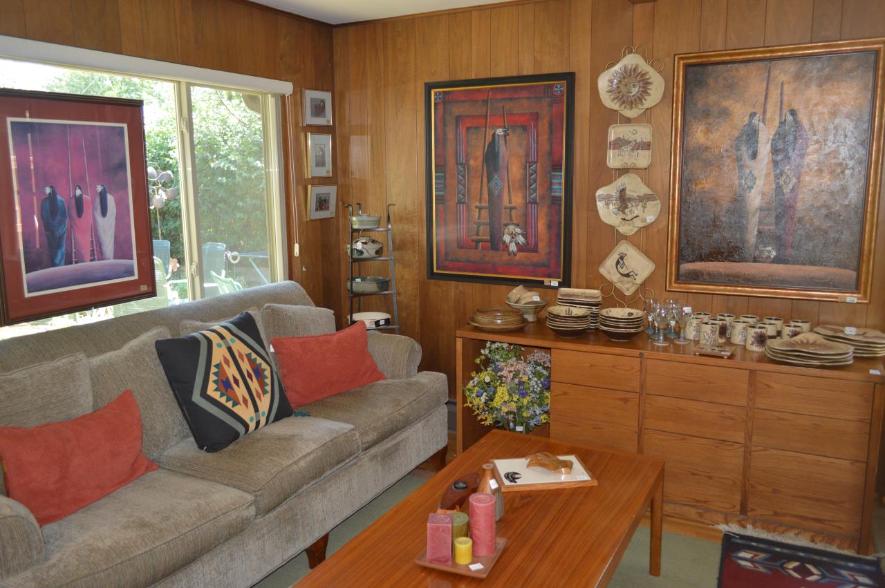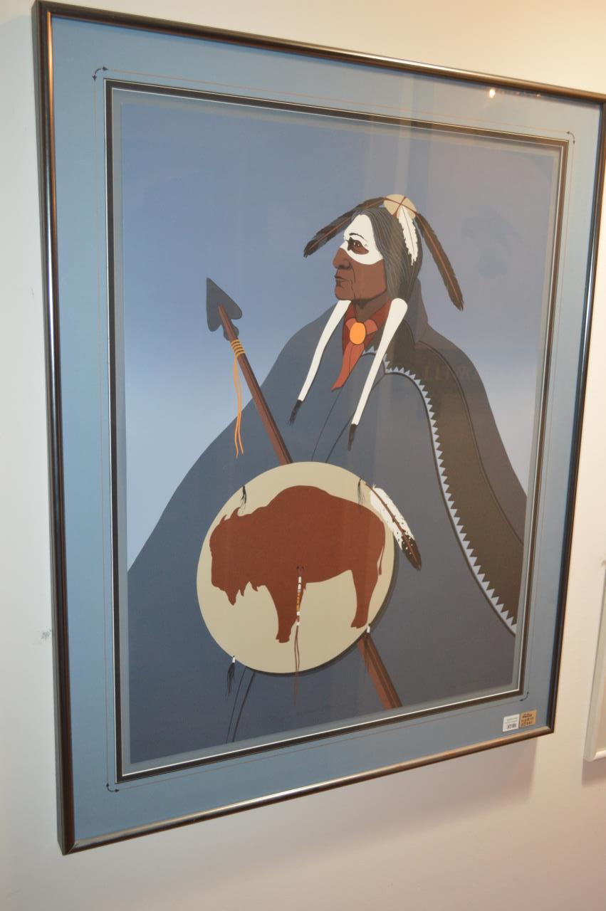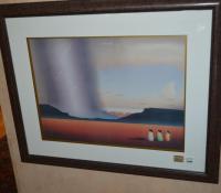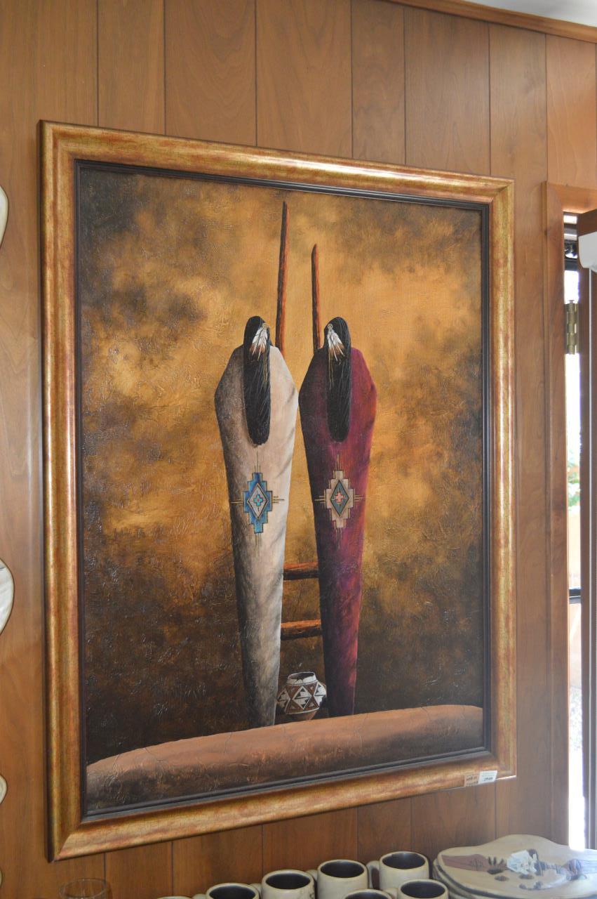 ART AND DECOR – Frank Howell, Dan Howell, Earl Biss, Guillame Azoulay, R.C. Gorman, Carla Romero, B. Bloom, Michael Atkinson, Amado Pena, Daniel Pollera, Epergnes & Vases, Art Glass, Mid Century Barware, Variety of Lamps, Sand Paintings. Chinese Carved Silverware Chest, Southwest Native Blankets, Japanese Lacquerware, Brass Bowls, Candlesticks and Vases.