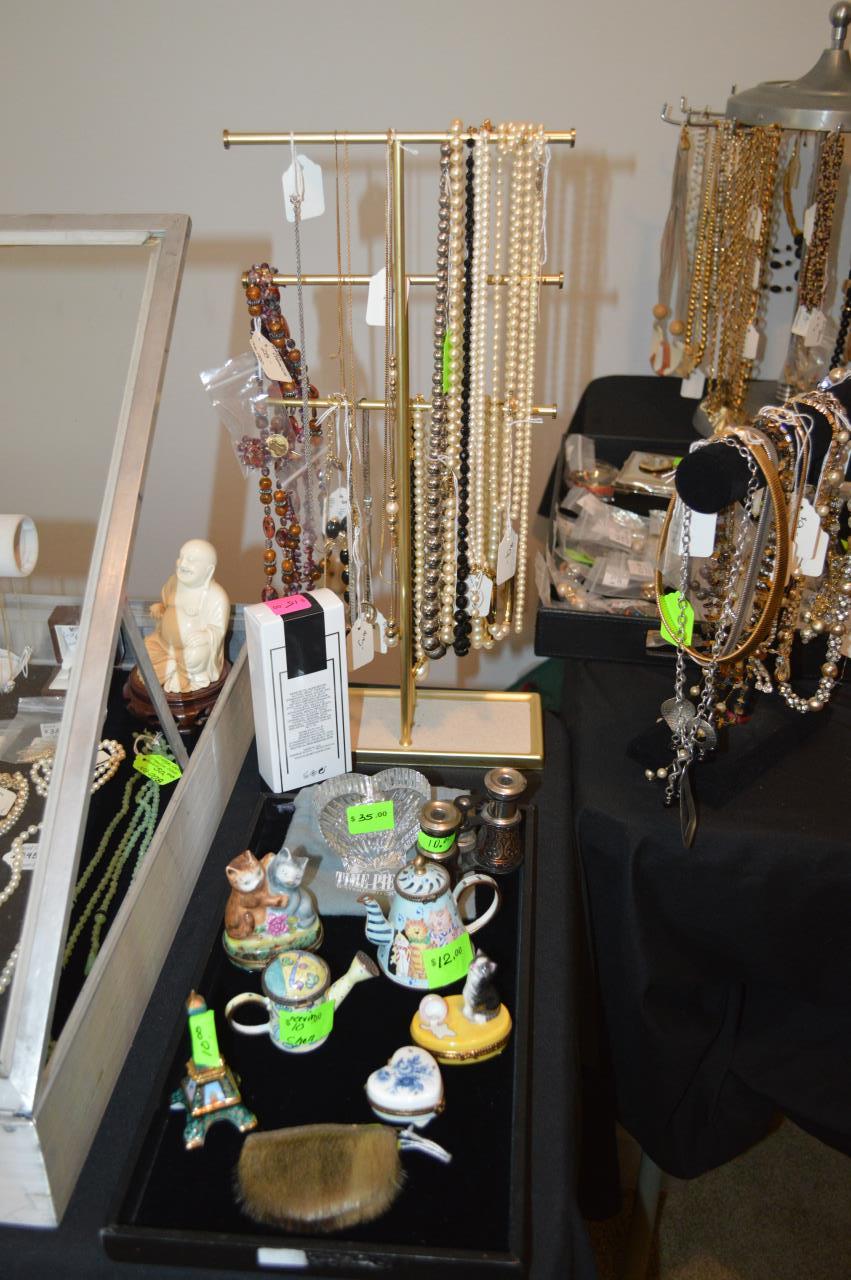 • Decorator Items: Stiffel Lamps, Mirrors, Art Glass, Sterling Hollowware, Jack Black Pottery, Limoges Boxes, Kevin Chen Figural Boxes, Tortoise Glassware, Lenox China, Vernonware, Artwork By De Grazia, Neiman, LW Original, Sun Ying, Monte Trumbull, Van Briggle, Lladro, and Fitz and Floyd!
