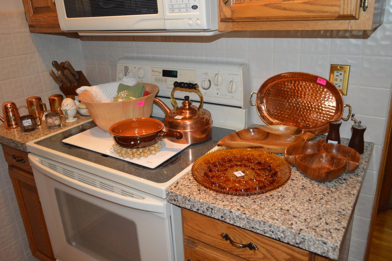 • Kitchenware: Pyrex, Revere Ware, Serving Trays, Coffee Pots, Stemware, Flatware, Crockpot, Roasting Pans and so much more!