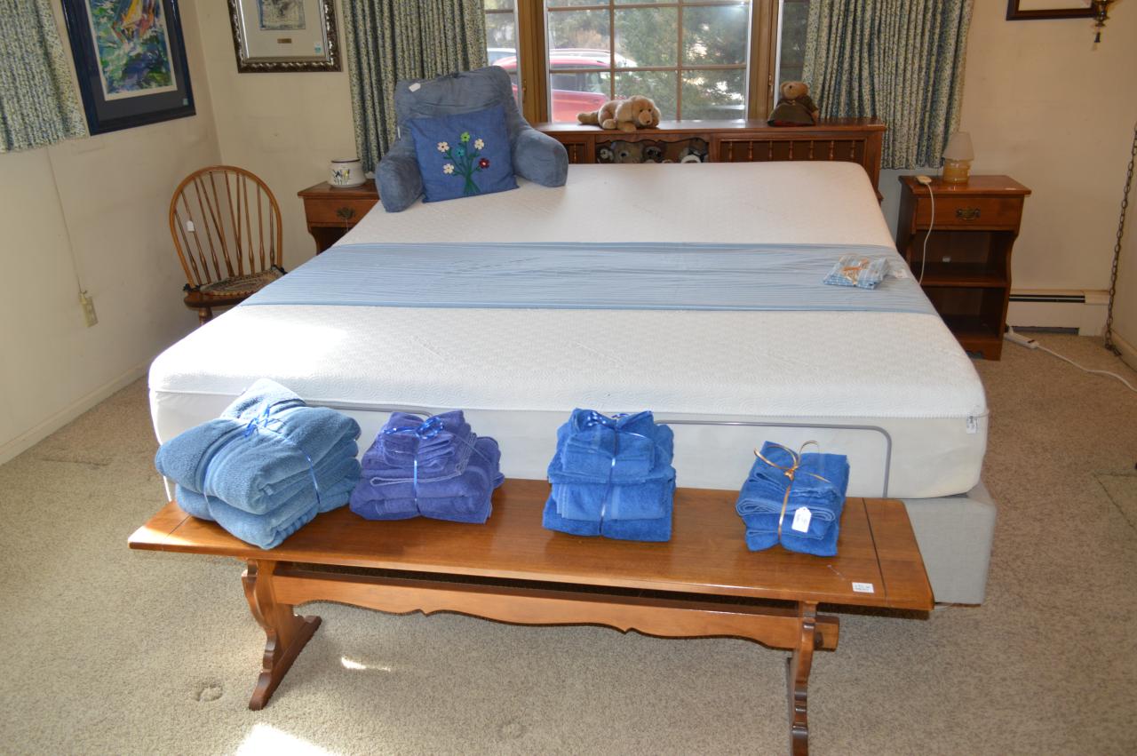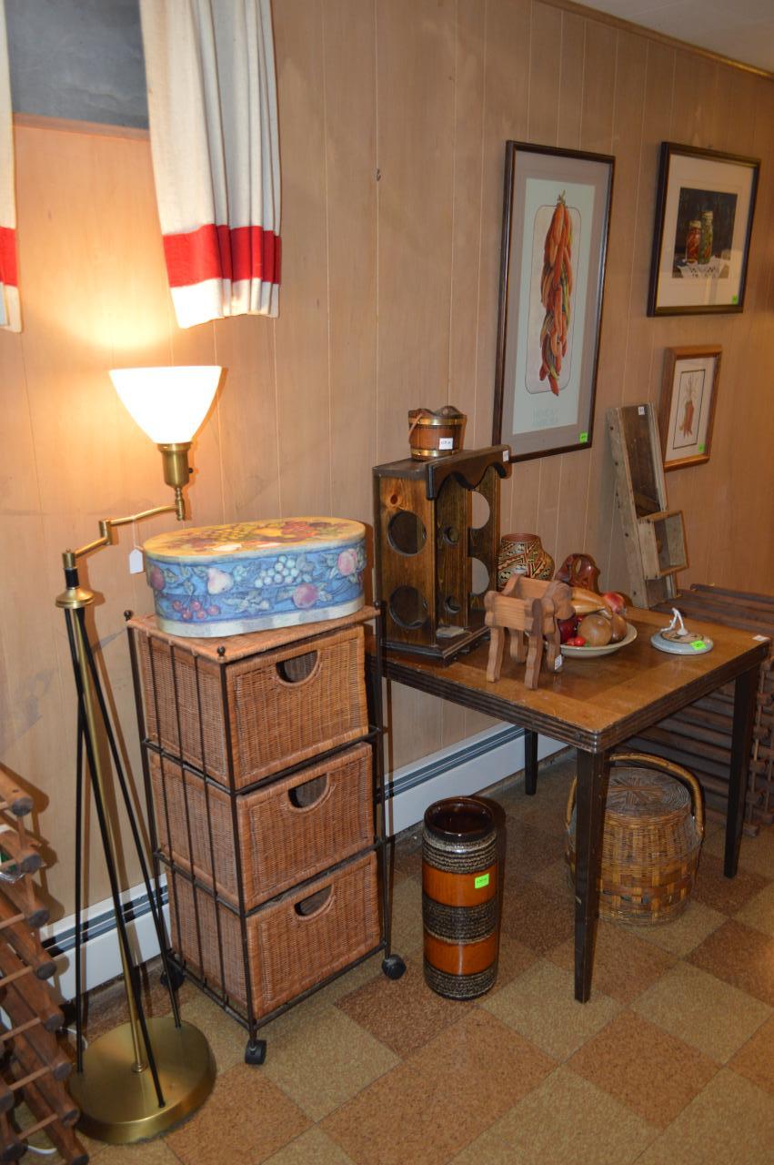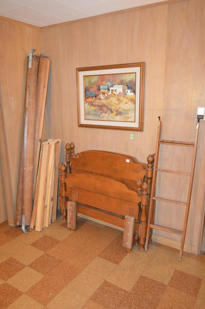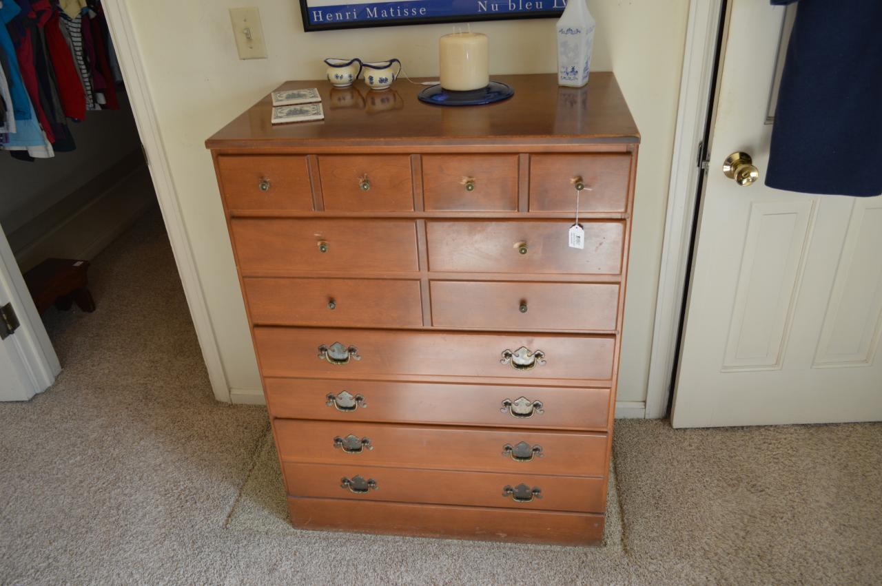 HOUSEHOLD FURNITURE And DECOR: Hitchcock Bachelor Chest, Queen Anne Table and Chairs, Adjustable Sofa/Coffee Table, Ethan Allen Chests and King Bed, Tempur-pedic Mattress, Child’s Roll-Top Desk, Wine Racks, Mexican Tile Mirror, 1950’s, ’60’s and 70’s Lamps, Brass King Headboard, Millennium Queen Bedroom Set by Ashley, Steel Case Desk and File Cabinets.