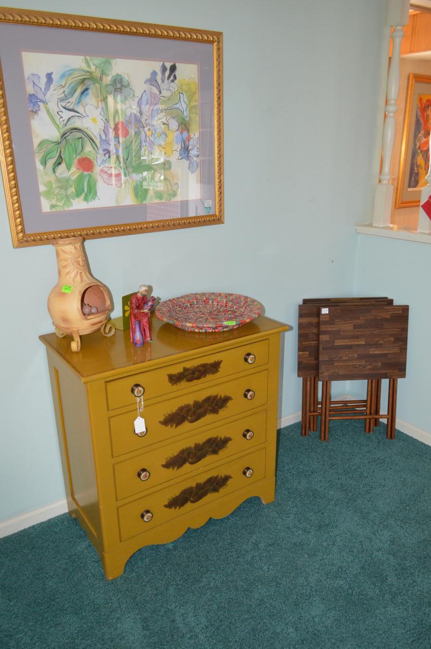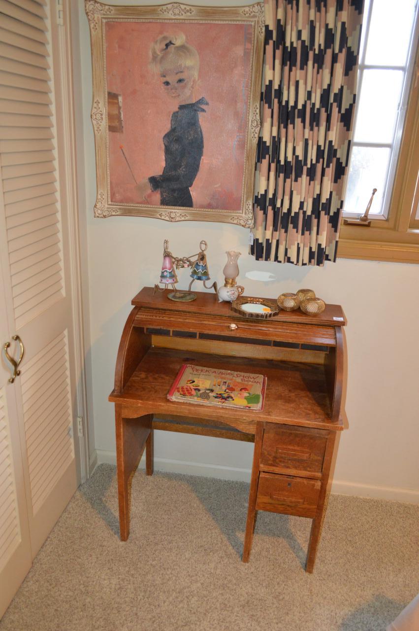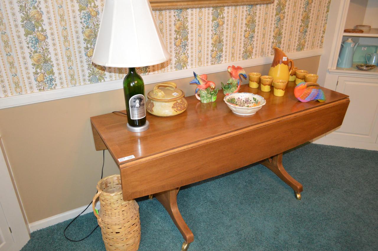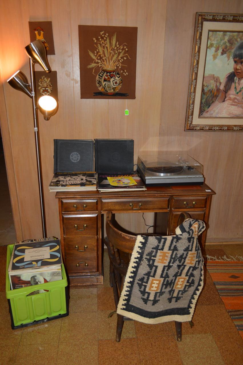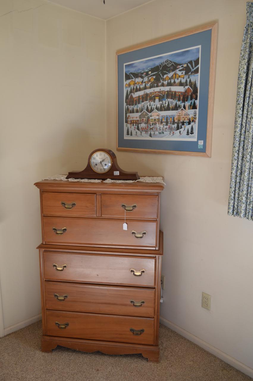 HOUSEHOLD FURNITURE And DECOR: Hitchcock Bachelor Chest, Queen Anne Table and Chairs, Adjustable Sofa/Coffee Table, Ethan Allen Chests and King Bed, Tempur-pedic Mattress, Child’s Roll-Top Desk, Wine Racks, Mexican Tile Mirror, 1950’s, ’60’s and 70’s Lamps, Brass King Headboard, Millennium Queen Bedroom Set by Ashley, Steel Case Desk and File Cabinets.
