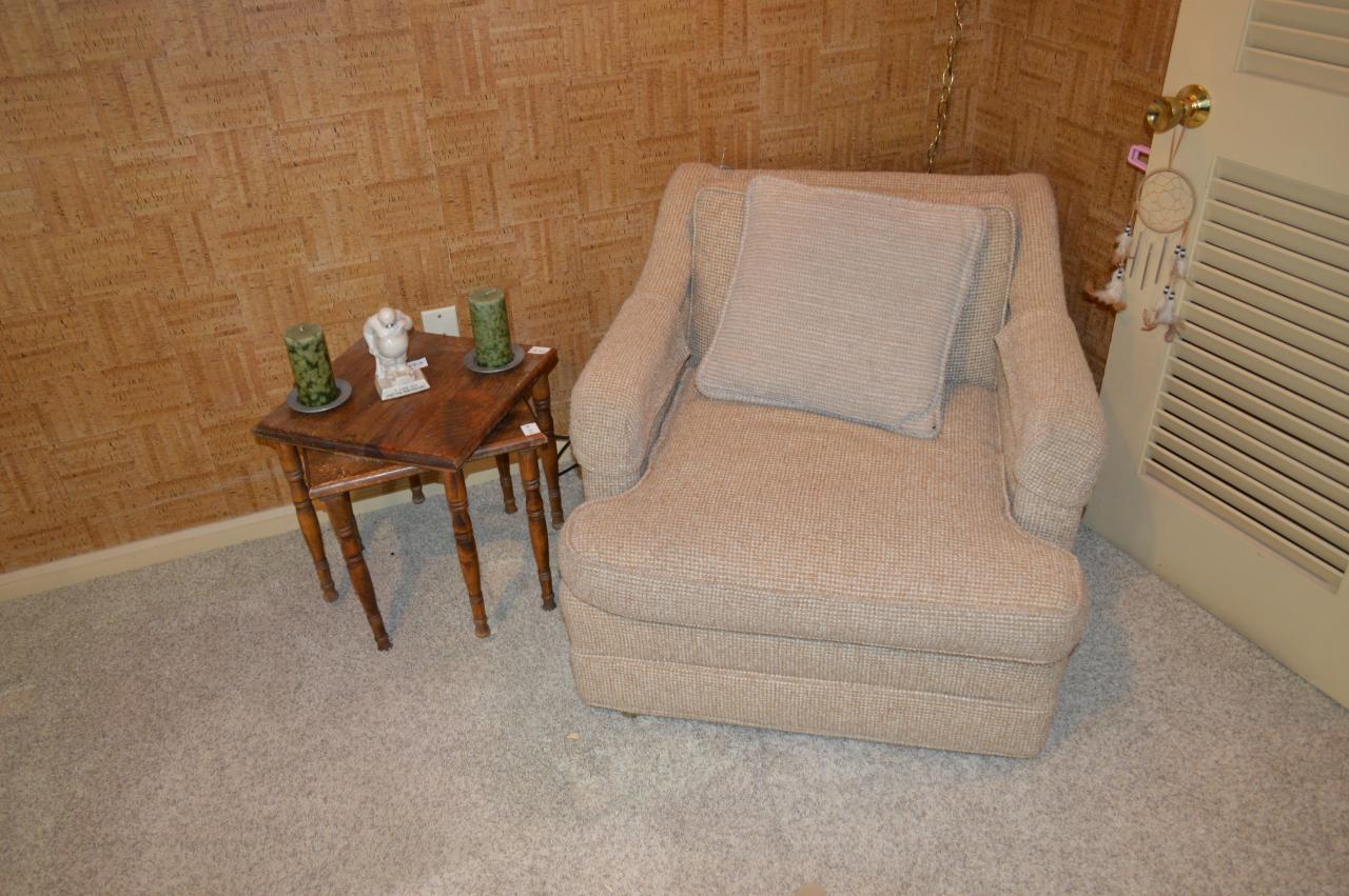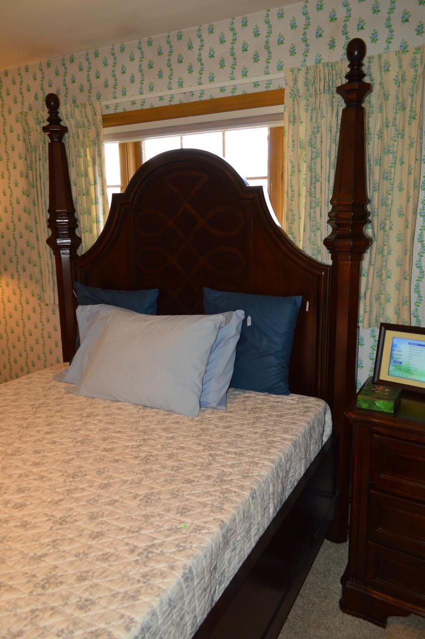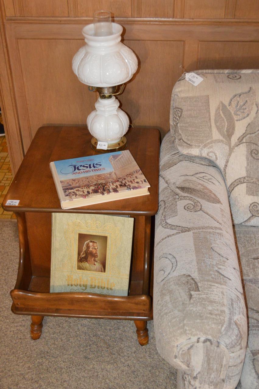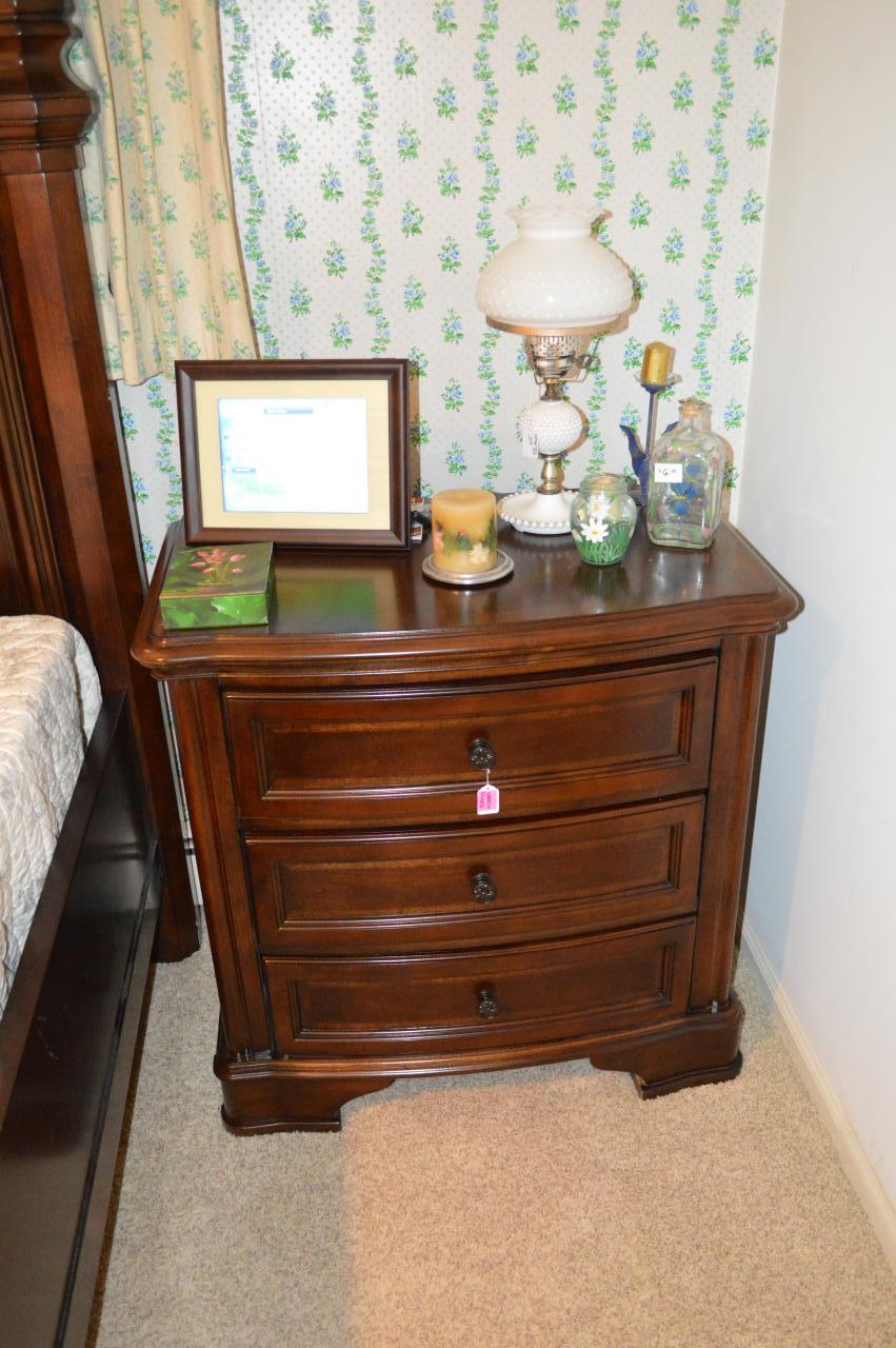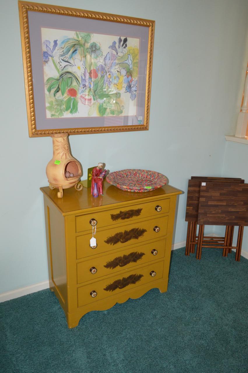 HOUSEHOLD FURNITURE And DECOR: Hitchcock Bachelor Chest, Queen Anne Table and Chairs, Adjustable Sofa/Coffee Table, Ethan Allen Chests and King Bed, Tempur-pedic Mattress, Child’s Roll-Top Desk, Wine Racks, Mexican Tile Mirror, 1950’s, ’60’s and 70’s Lamps, Brass King Headboard, Millennium Queen Bedroom Set by Ashley, Steel Case Desk and File Cabinets.