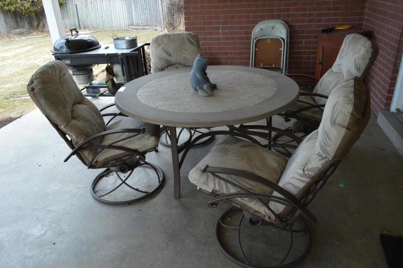 MISCELLANEOUS: Broncos Jackets, Ping Pong Table, Weber Grill, Smith-Corona Typewriter, American Flyer Racing Bike, Hydraulic Table, Amana Freezer, GE Refrigerator, Onkyo Turntable, Patio Set, Fountain, Herring-Hall-Marvin Safe, Books, Cd’s, Records, Electronics, Garden Items, Ladders and SO MUCH MORE!!!