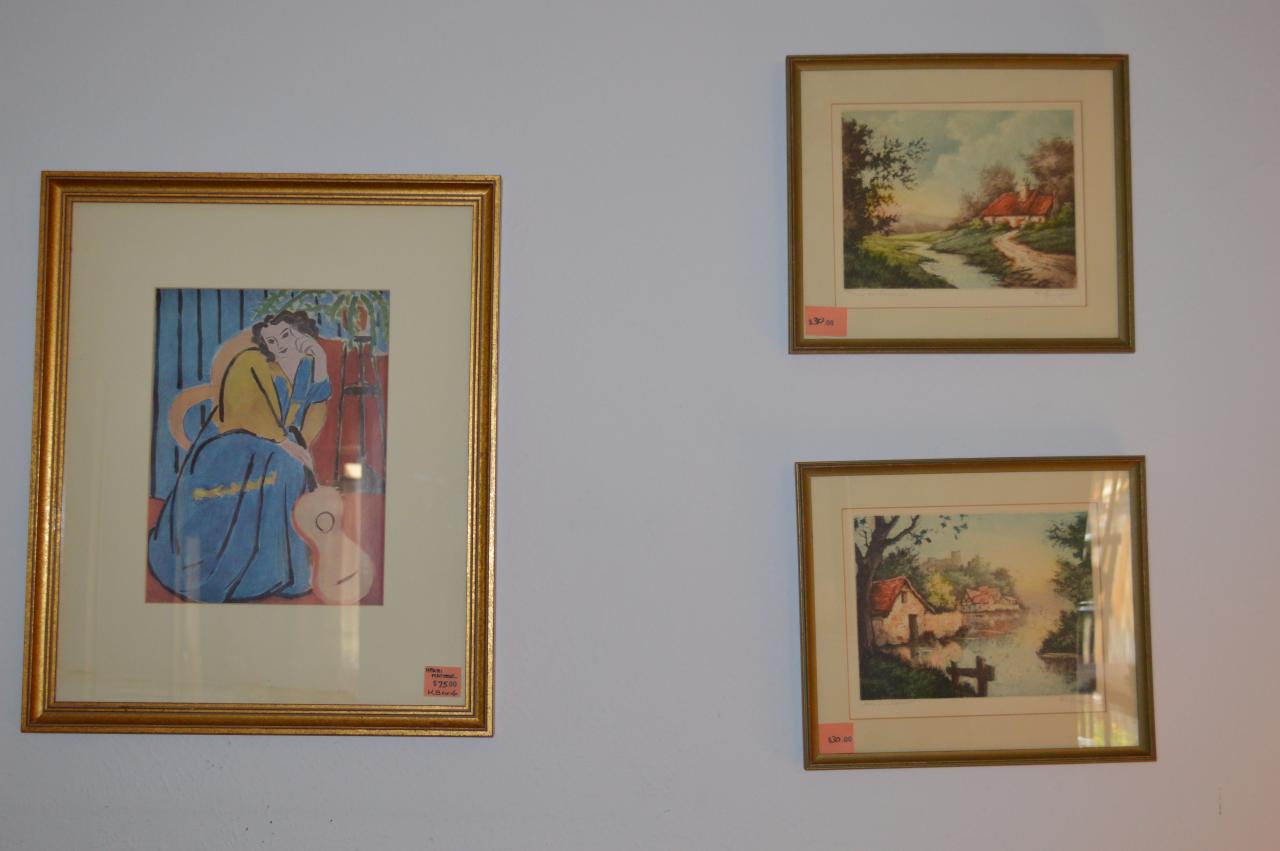 • Art and Decor – Chen Serigraph, Thomas McKnight Tryptic, Alex Meilichon Serigraph, Linnea Pergola Mixed Media, Enid Peterson Watercolor, A. Kikuchi Lithograph, Shahn Oil Painting, Allayn Stevens Print, Sculptured Wood Art, Matisse Print, Vintage Wooden Skis and Poles, Vintage Felt Sports Pennants and SO Much More!