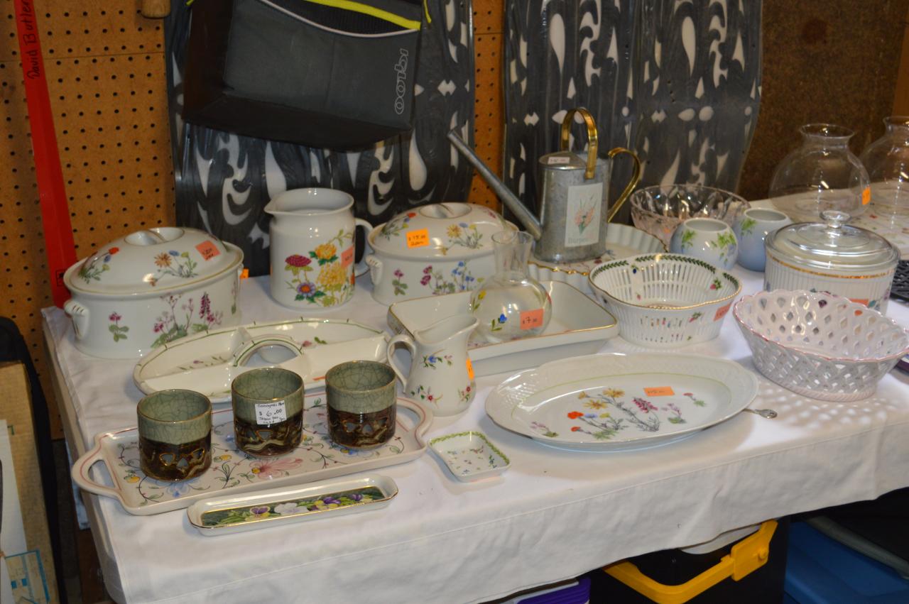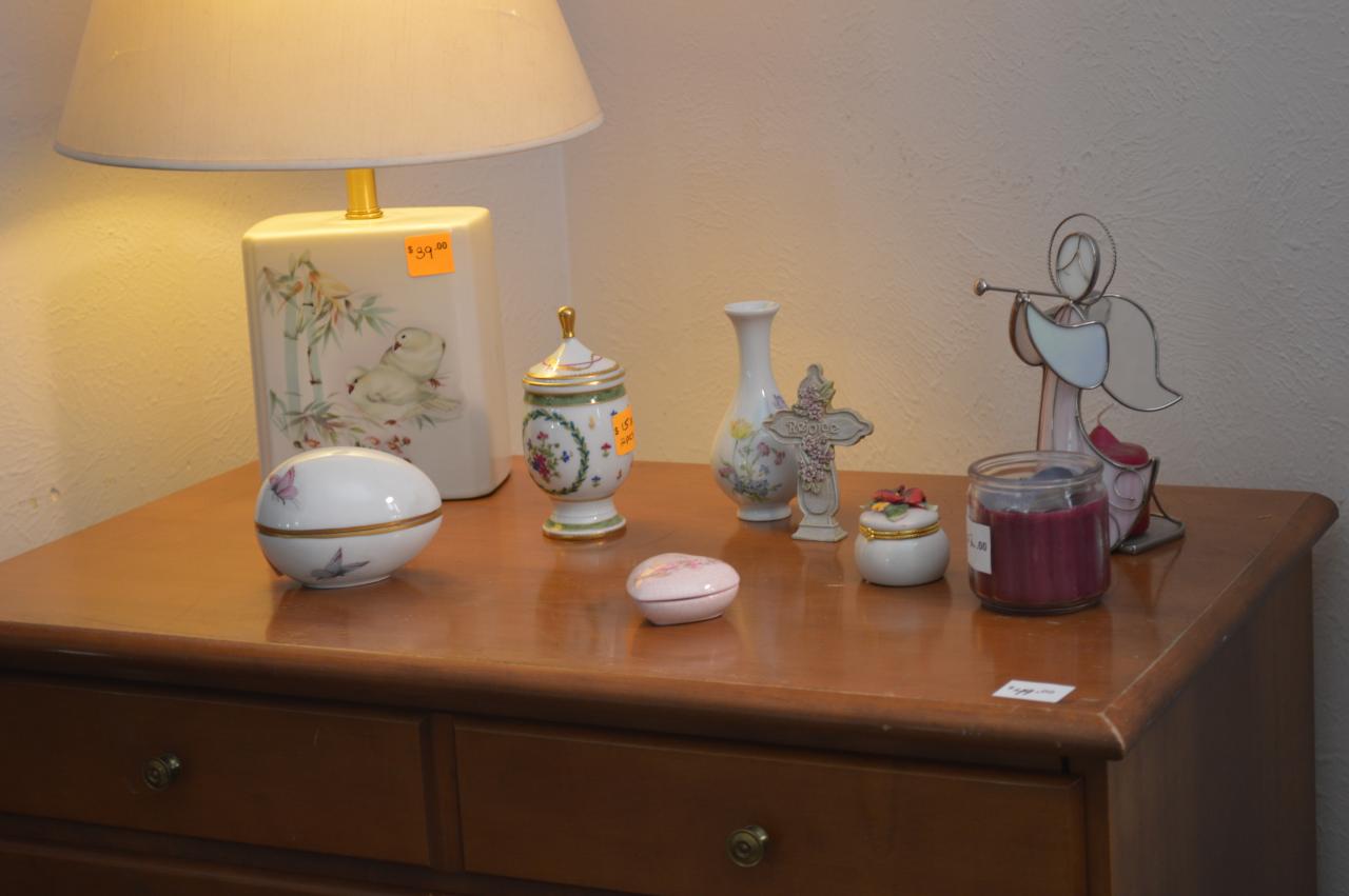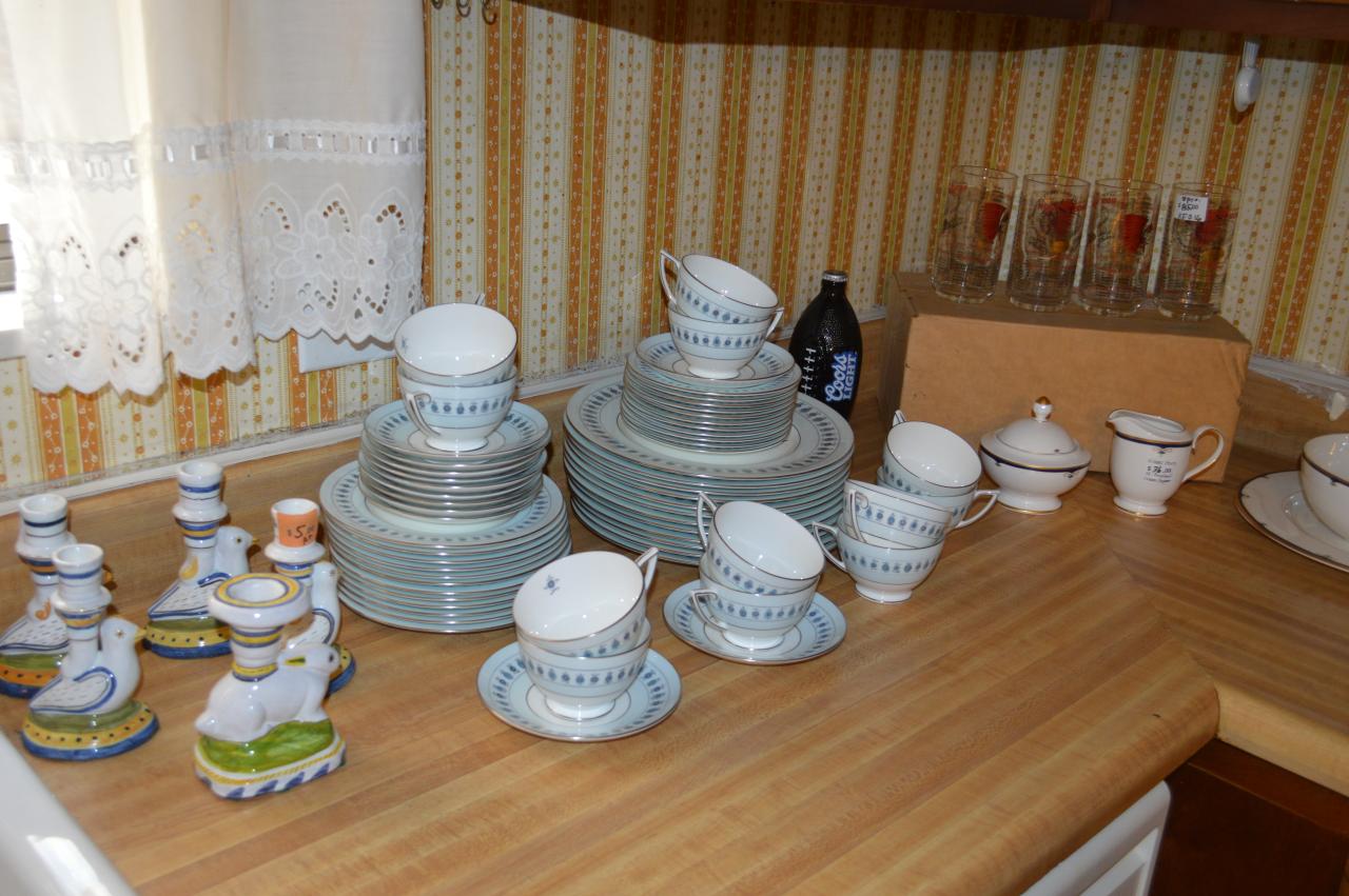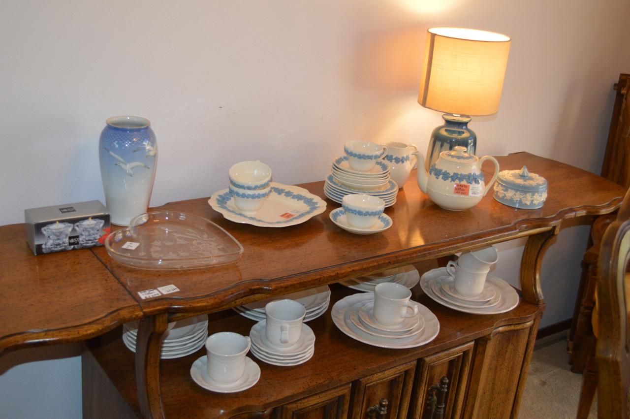 • China/Glassware – Pfaltzgraff Dinnerware, 1970’s Stanford Indians Rosebowl Glasses, Royal Grafton Three Tier Cake Stand, Murano Vase, Minton Dinnerware, Royal Bayreuth Tea Set, Herrend Candlesticks, Wedgwood Queensware, Haviland Limoges Dinner Set, Hand Blown Blue Tumbler Set, Orrefors Bowl, Multi-Color Stemware, Wine and Water Goblets and So Much More!