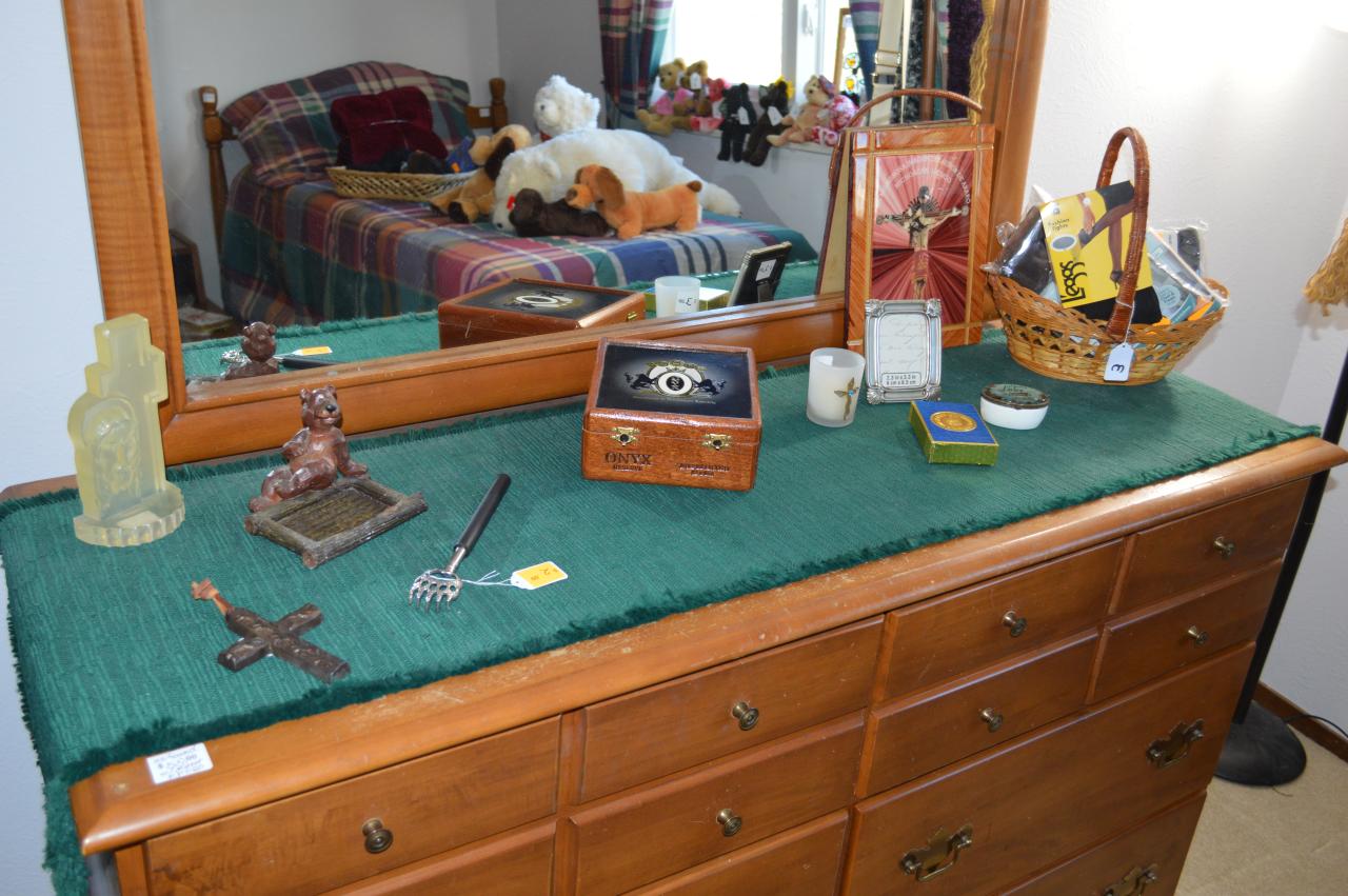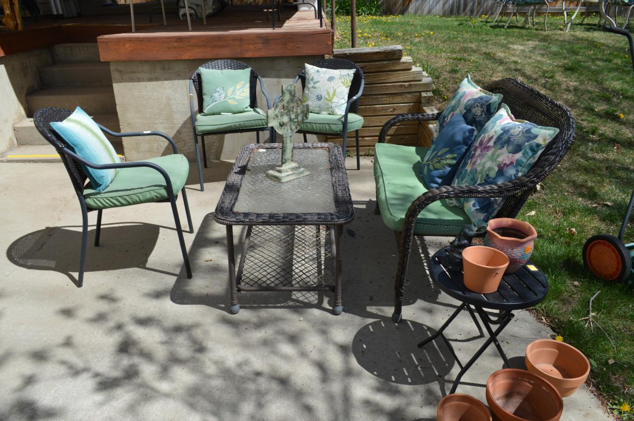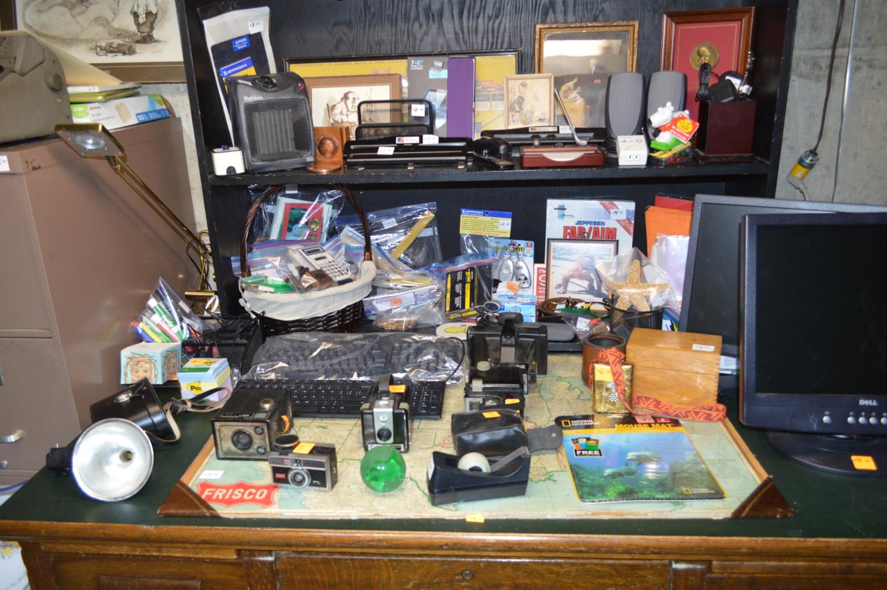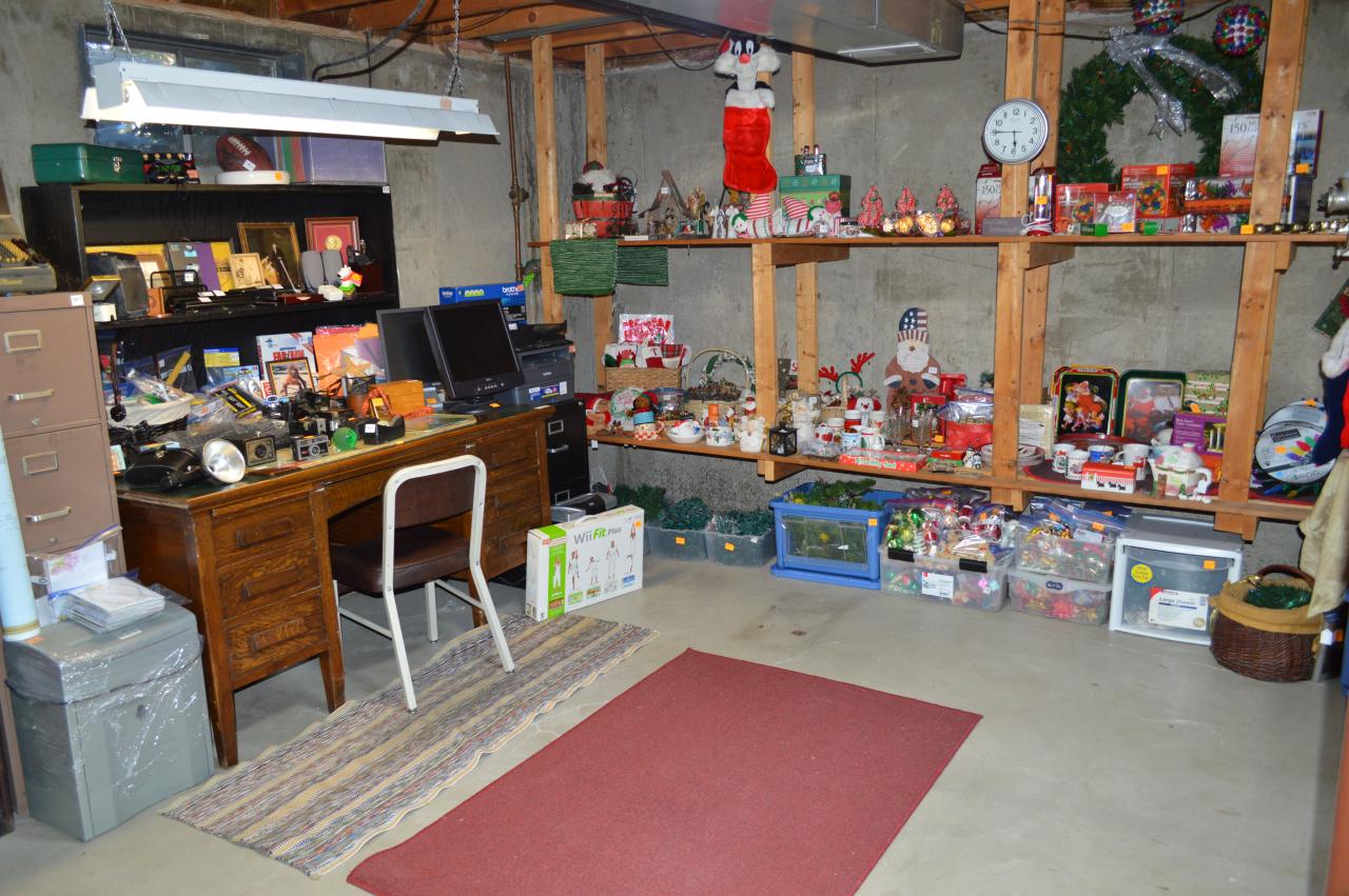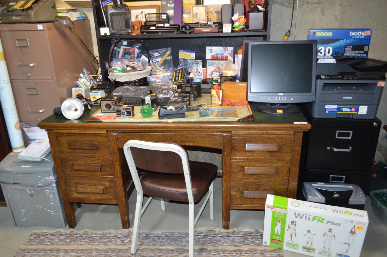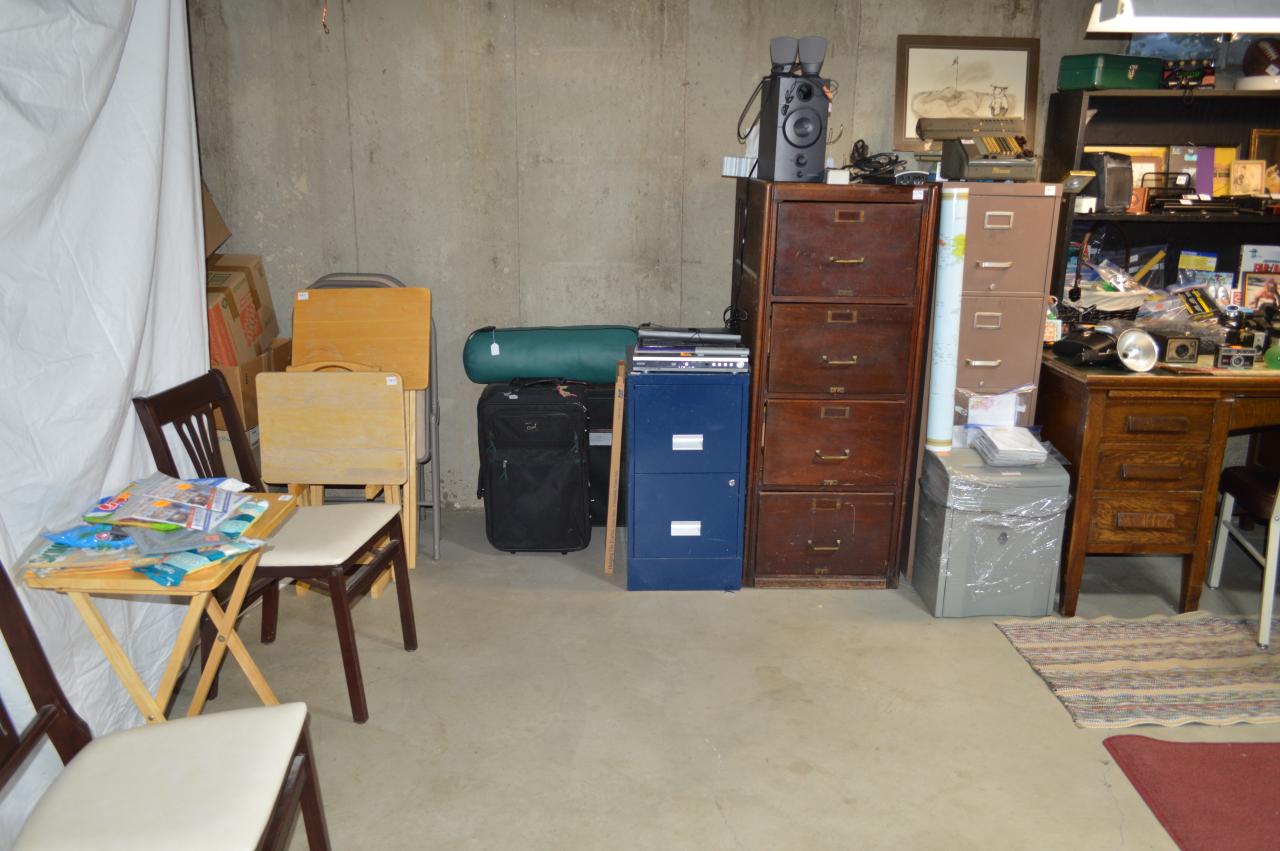 • Furniture – Vintage Oak Sectional Lawyer’s Cabinet, Cheval Mirror, Curio Cabinet, 50’s Maple Bedroom Pieces, Wrought Iron Patio Set, Wicker Patio Set, Oak Kitchen Table with 3 Chairs and Bench, Leather Couch and Chair, Oak Oval Table and Chairs, Iron Coat Rack and Much More!