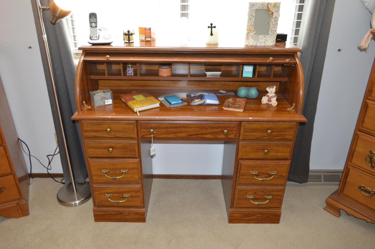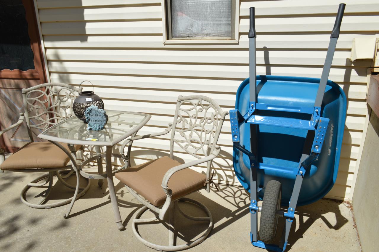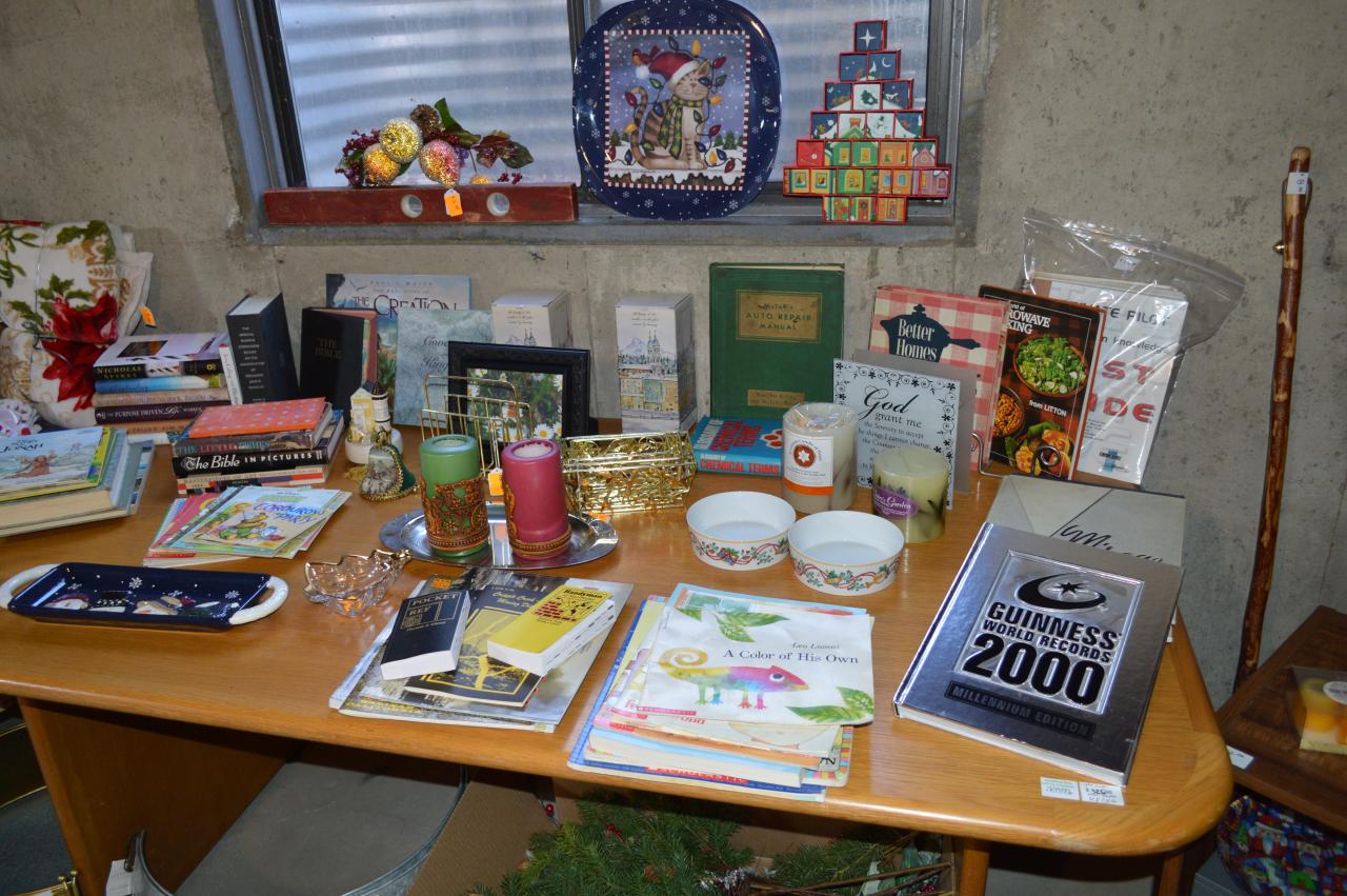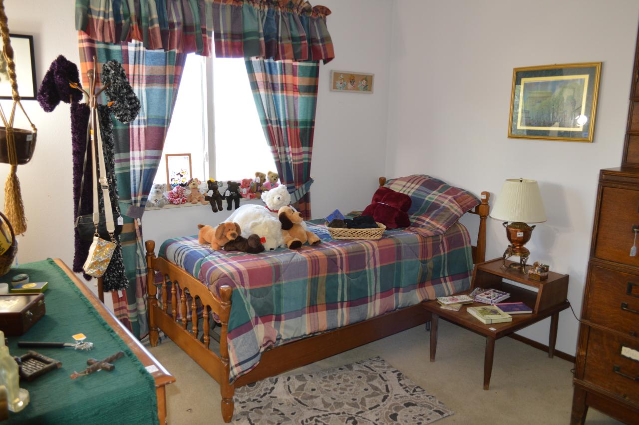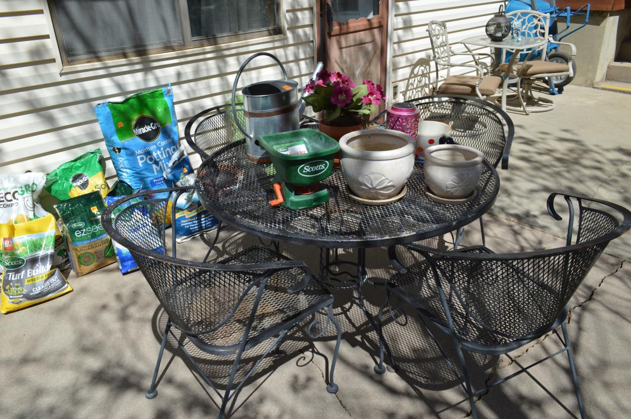 • Furniture – Vintage Oak Sectional Lawyer’s Cabinet, Cheval Mirror, Curio Cabinet, 50’s Maple Bedroom Pieces, Wrought Iron Patio Set, Wicker Patio Set, Oak Kitchen Table with 3 Chairs and Bench, Leather Couch and Chair, Oak Oval Table and Chairs, Iron Coat Rack and Much More!