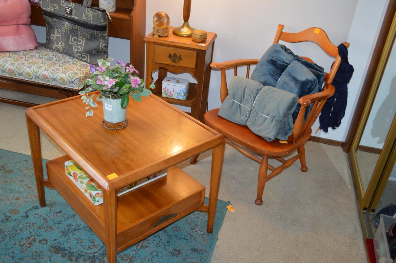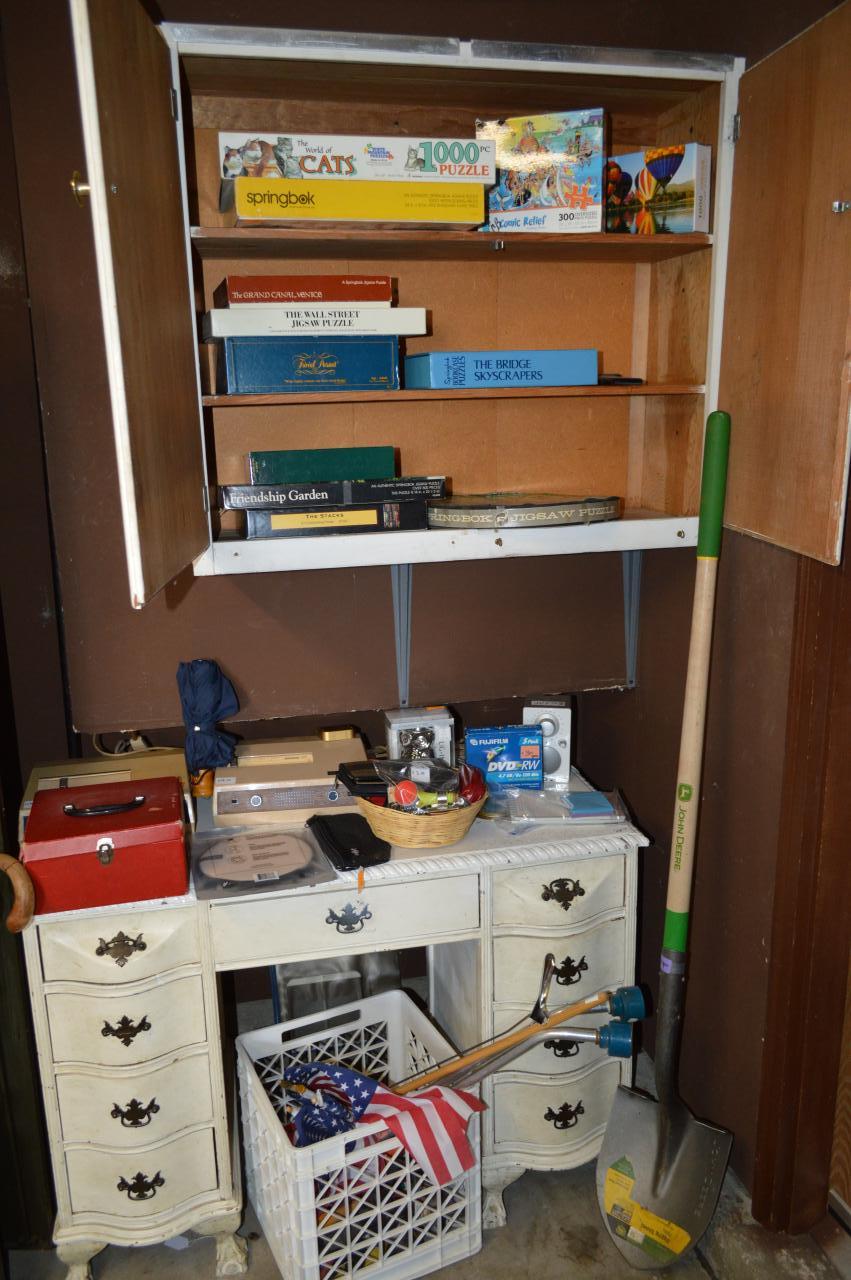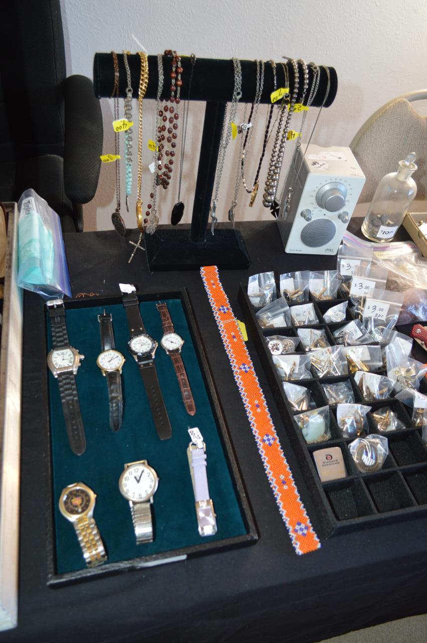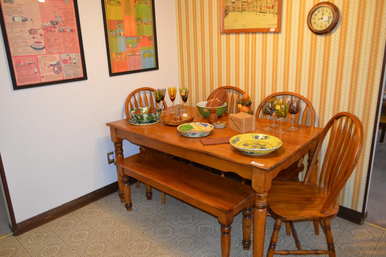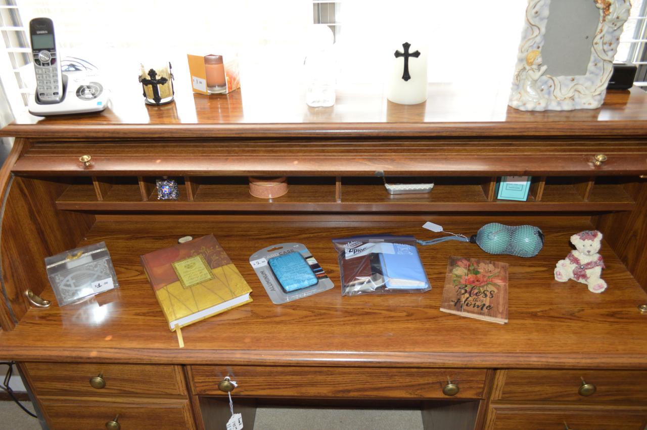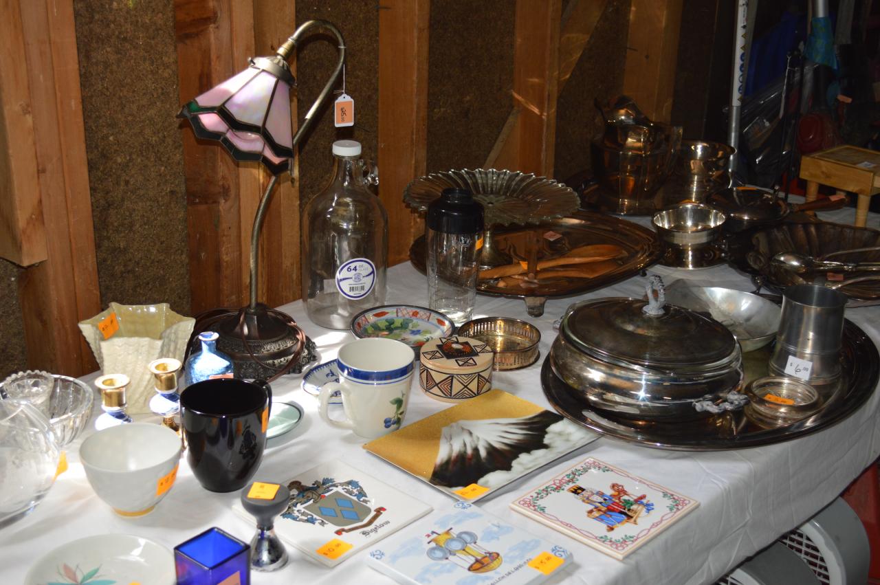• Furniture – Vintage Oak Sectional Lawyer’s Cabinet, Cheval Mirror, Curio Cabinet, 50’s Maple Bedroom Pieces, Wrought Iron Patio Set, Wicker Patio Set, Oak Kitchen Table with 3 Chairs and Bench, Leather Couch and Chair, Oak Oval Table and Chairs, Iron Coat Rack and Much More!